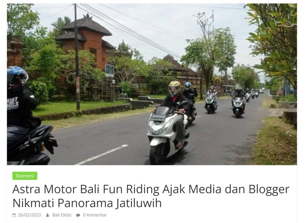 Kami menemukan artikel dari website jabar.tribunnews.com pada bulan Februari kemarin tentang dealer sepeda motor yang menggelar kegiatan Journalist, Blogger, and Vlogger Leisure Riding to Pangandaran, pada 23-24 Februari 2023.